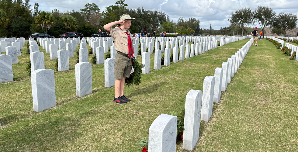 December 18, 2021: A very special day for the Troop at South Florida National Cemetery. Beginning in early November we sell wreaths as a Troop fundraiser, then participate in placing the wreaths, with reverence, at the cemetery.